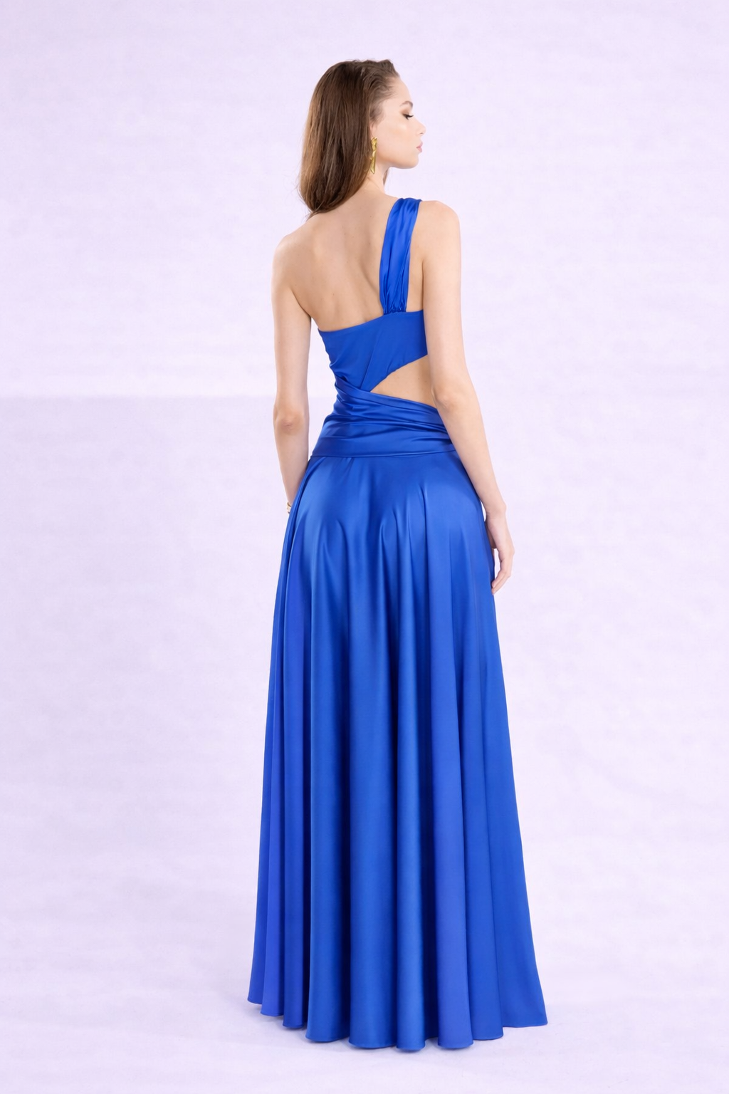 Maxi φόρεμα με έναν ώμο και κόψιμο στο πλάι.