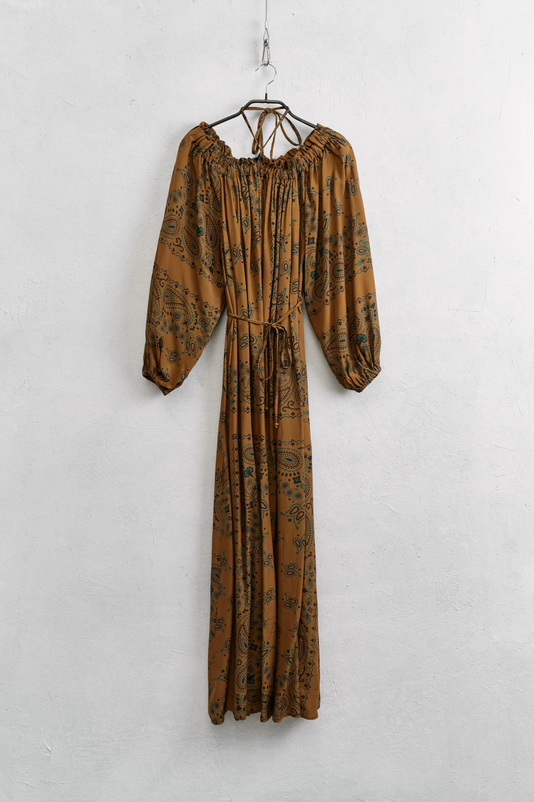 Μακρύ φόρεμα με μοτίβο λαχούρι. Διαθέτει halter λαιμόκοψη, σούρες στο επάνω μέρος και θηλιές με κορδόνι στη μέση.