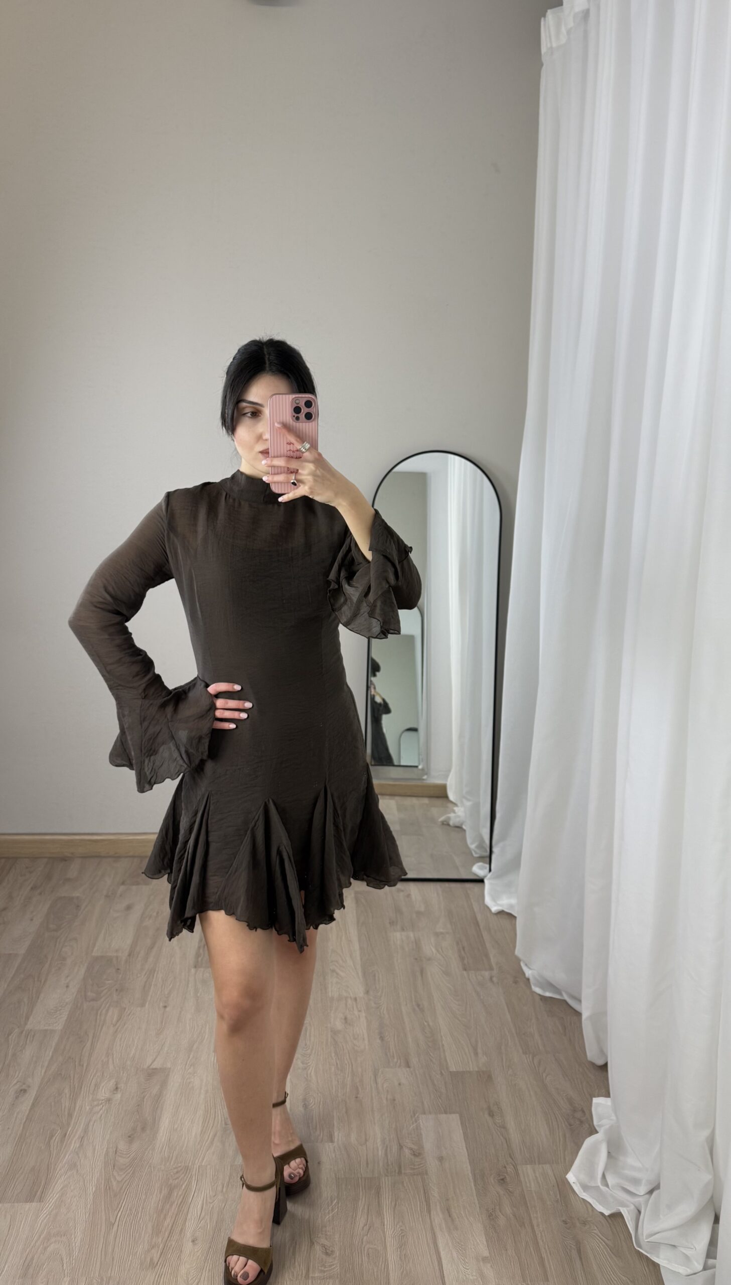 Κοντό φόρεμα σε καφέ απόχρωση