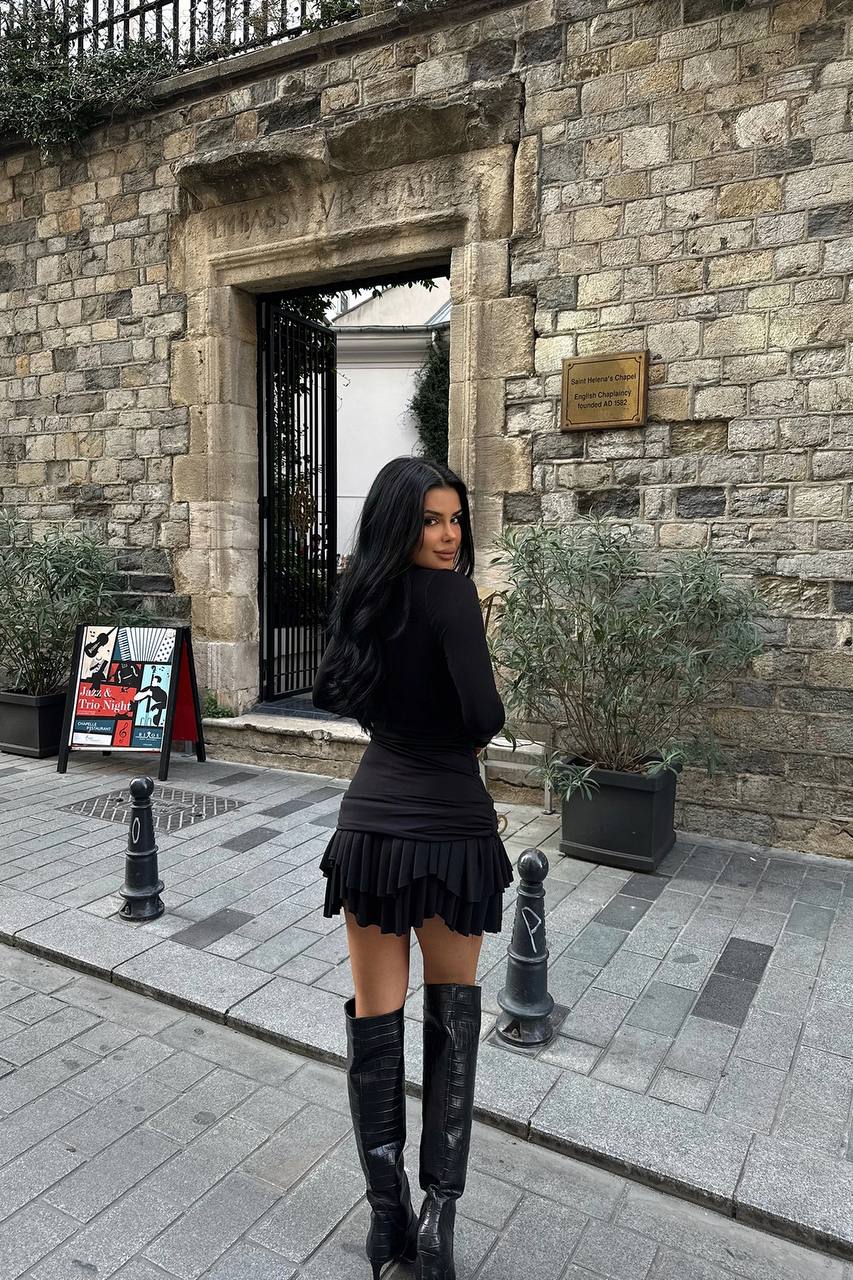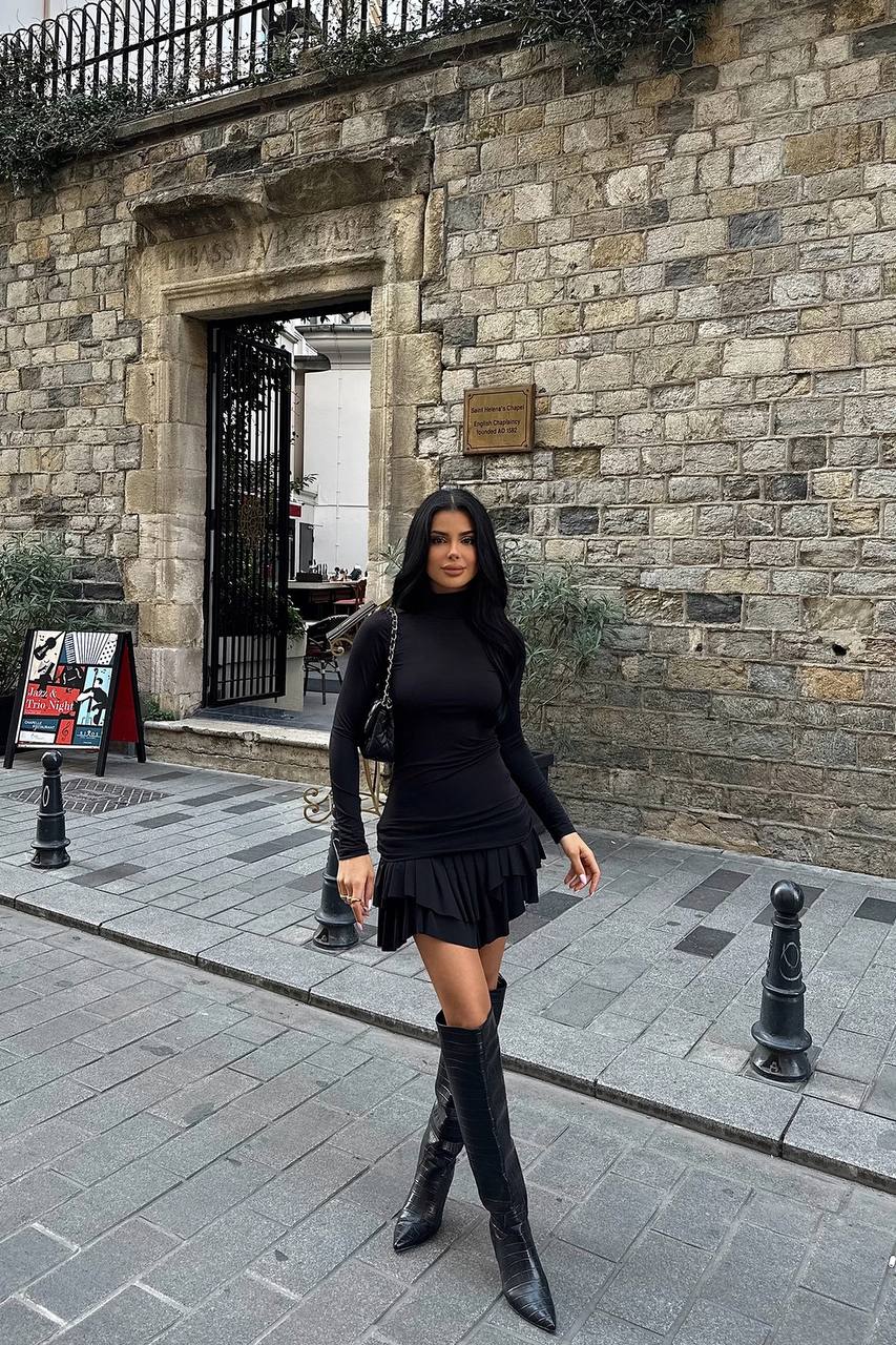 Μίνι φόρεμα σε εφαρμοστή γραμμή με ζιβάγκο και μακριά μανίκια.