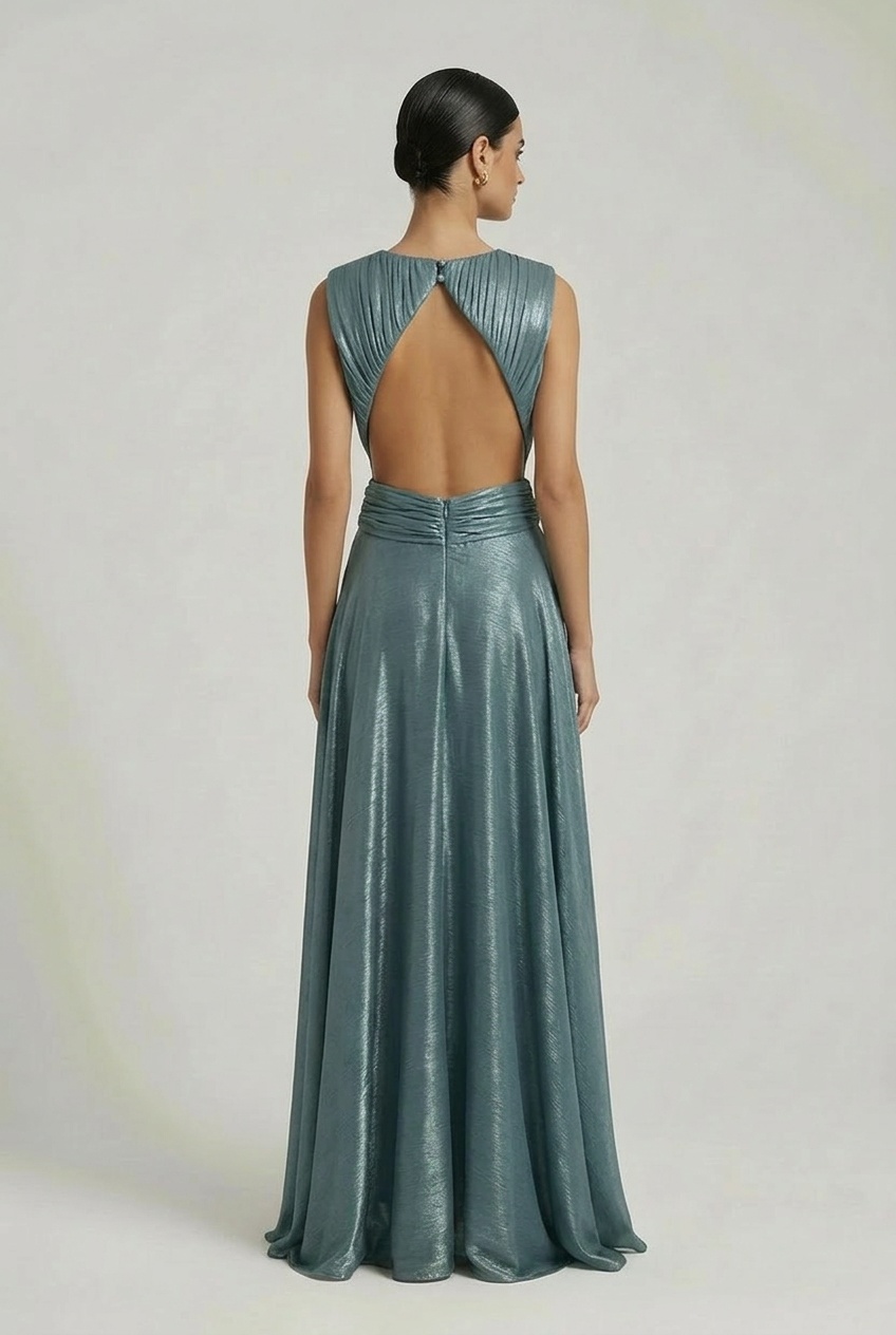 Αμάνικο εξώπλατο φόρεμα σε βεραμάν απόχρωση.