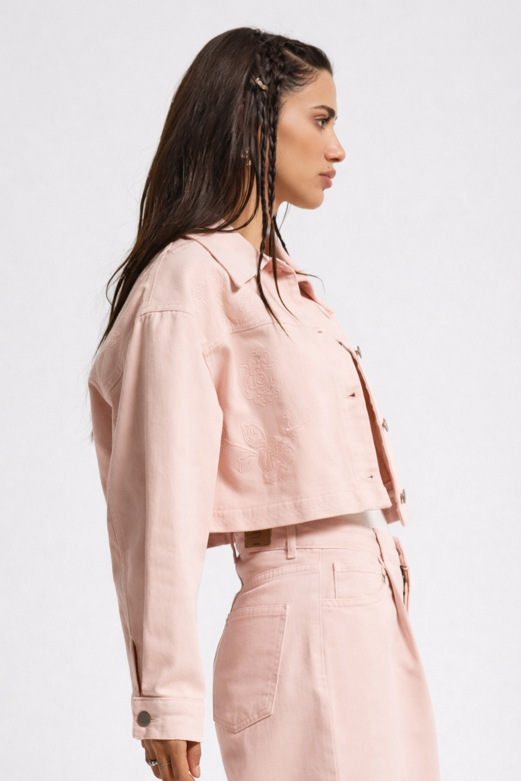 Crop jean jacket.Mε λεπτομέρεια με κέντημα .Διαθέτει κουμπιά.